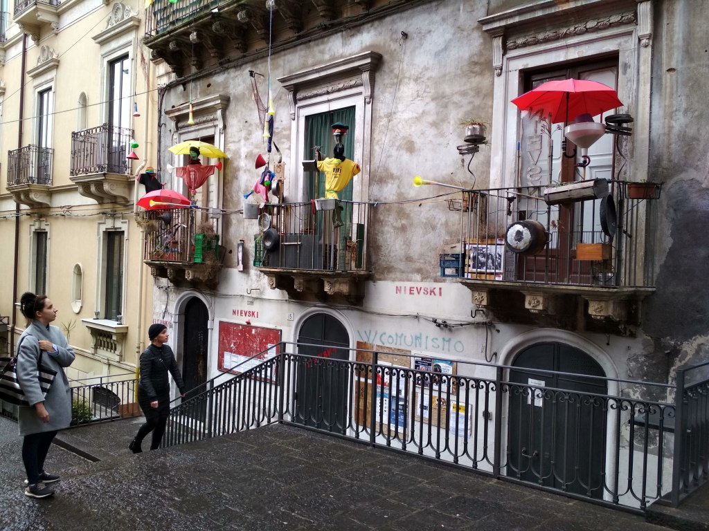Meldujemy się na Via Luigi Capuana 27: W wąskiej klatce schodowej mieszają się zapachy kadzidła, ciężkich damskich perfum i starych murów kamienicy. Apartament skromny, ale klimatyczny. Temperatura w środku rześka.