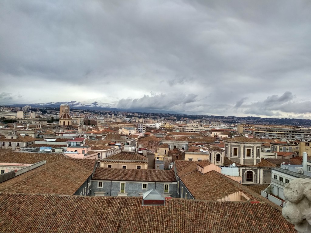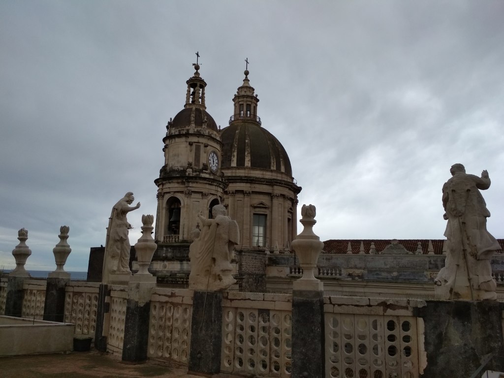 Z naprawdę konkretnie wypchanymi trzewiami wchodzę po okrągłych wąskich schodach na kopułę Church of the Badia di Sant'Agata (4 euro). Z jej szczytu rozciąga się fajny widoczek na miasto oraz oczywiście na Królową Etnę. Tego dnia Jej Wysokość była zakryta gęstą warstwą chmur, ale zdawała się powiedzieć do mnie: nic straconego, jeszcze tu wrócisz.