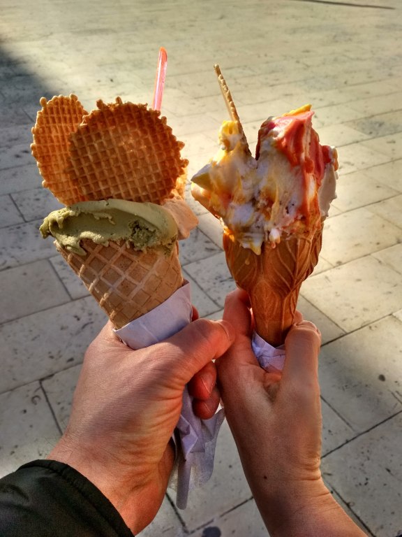 Nasze niesprecyzowane plany żywieniowe na wieczór powodują, ze błąkamy się coraz bardziej nerwowo po wąskich uliczkach. Owoce morza? Pizza? Pasta? Głodni przyspieszamy coraz bardziej kroku jak wycieczka szkolna wysiadająca z autokaru i biegnąca do jedynego TOI – TOIa na parkingu. Siadamy w knajpie, bierzemy menu, ale jakiś szósty zmysł mówi nam, żebyśmy zmienili lokal. Czemu? Tego pewnie nigdy się już nie dowiemy. W końcu trafiamy na mały bar. Może karma powróciła, bo pizza była średnia w smaku, no i malutka. Lecimy spać.