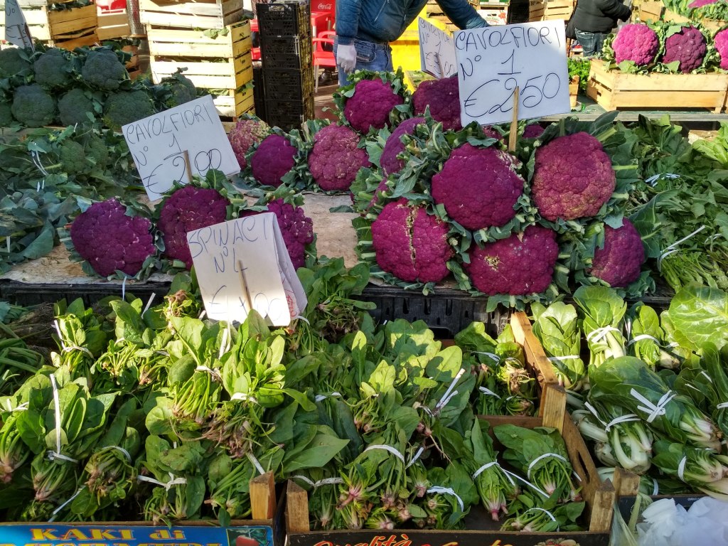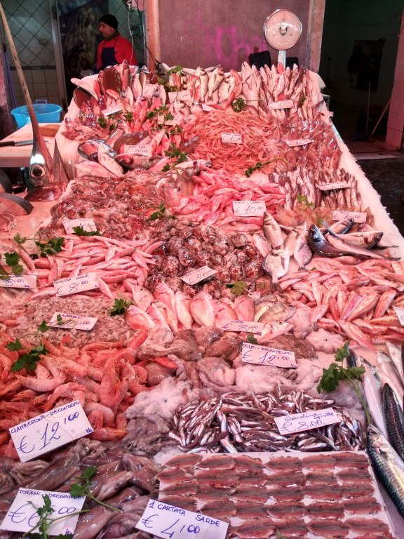 Pijemy domowe espresso (chyba potrójne), popijamy obficie wodą. Śniadanie zje się później. Rzut kamieniem od mieszkania znajduje się Piazza Carlo Alberto di Savoia. W dzień plac zamienia się w rynek na którym możesz kupić niemal wszystko. Od fioletowego kalafiora po futro z norek. Wieczorem unosi się tu zapach sprzedawanych wcześniej ryb pomieszany z wonią haszyszu, która nawiewa z okolicznych zaułków. Kupujemy opuncje (2 euro), pomarańcze (0,5 euro) i cytrona.