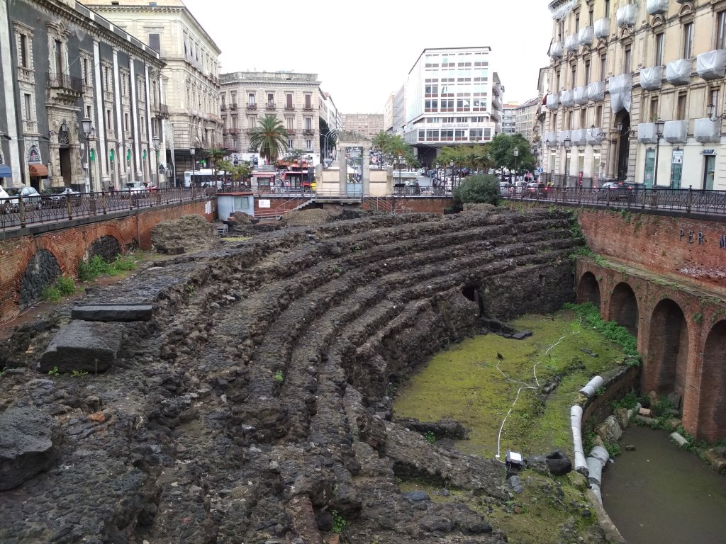 Moja filozofia zwiedzania nie jest mocno skomplikowana. Lubię czerpać doznania wszystkimi zmysłami, bo tylko wtedy zwiedzanie jest kompletne i tylko wtedy jestem w stanie zapamiętać wszystko na długo. Czego szukam zwiedzając? Wszystkiego. To co piękne i brzydkie. Prawdziwe. 29 stycznia kończę 40 lat. Gdzie naładować baterie? Bilety do Katanii już kupione. Lecimy we trójkę: ja, żona i córka. 23 styczeń (środa) Katania Dwa podejścia do lądowania potraktowałem jako dobry omen. Z lotniska Katania Fontanarossa bierzemy Alibusa za 4 euro i za kilkanaście minut jesteśmy już przy Parku Villa Bellini. Kilka minut szybkiego marszu z bagażami, przywraca krążenie w nogach. Meldujemy się na Via Luigi Capuana 27: W wąskiej klatce schodowej mieszają się zapachy kadzidła, ciężkich damskich perfum i starych murów kamienicy. Apartament skromny, ale klimatyczny. Temperatura w środku rześka. Plan na wieczór jest krótki: szybka przekąska, kieliszek wina i spać. Nieopodal mieszkania trafiamy na mały bar Arancineria Espresso Serafino przy Via Musumeci. Zamawiamy klasyczny zapychacz Arancini (1,8 euro za sztukę). Po kilku godzinach spędzonych w powietrzu, pierwsze kęsy są niczym balsam dla duszy, a treściwy ryż z nadzieniem z bakłażana spływa powoli przełykiem, niczym lawa po wulkanicznym stoku. Dzieła wieczornej rozkoszy dopełnia lampka czerwonego Nero d’Avola pod parasolem w barze Città Vecchia. Odpalamy klimę na +30. Pierwsza noc przy Via Capuana upływa przy akompaniamencie podskakującej studzienki kanalizacyjnej. Cykliczne brzdęki po upływie jakiegoś czasu zaczęły działać jak melatonina. Zasypiamy.