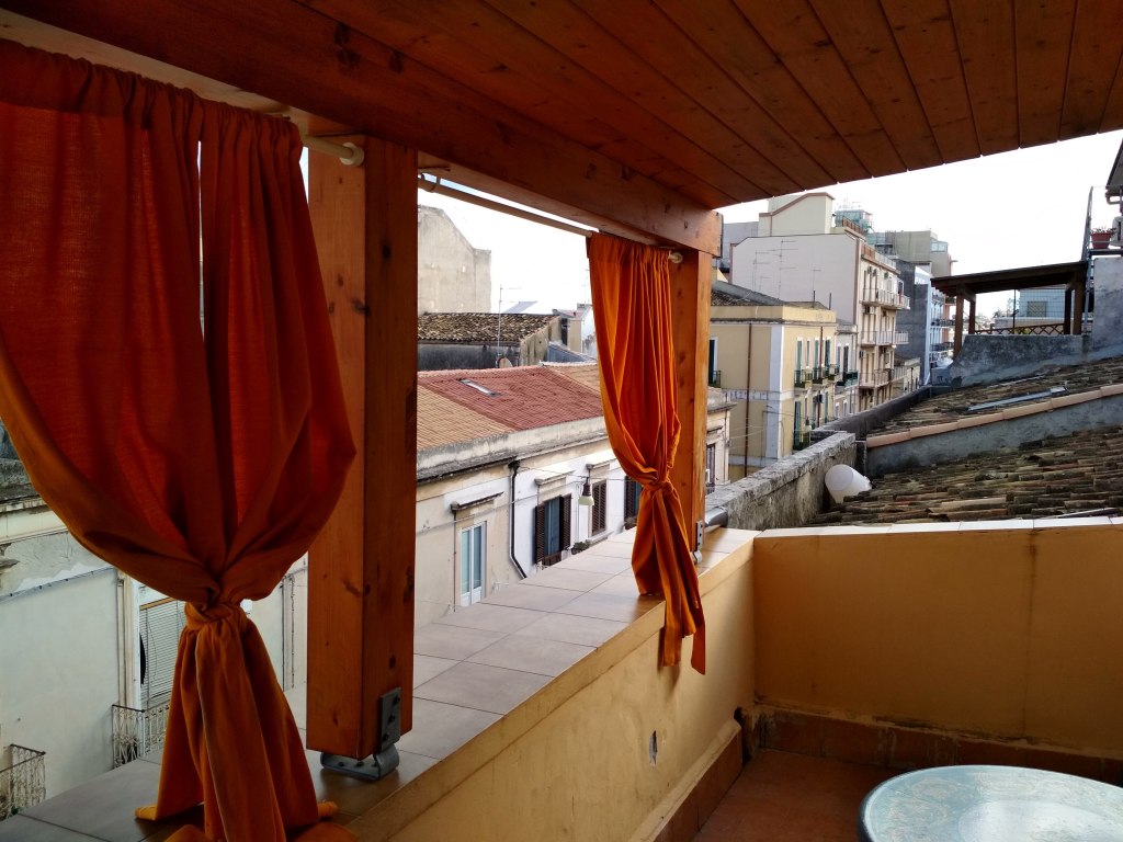 Po krótkim spacerze z manatkami ze stacji na Corso Umberto docieramy na Via Caltanissetta 41. Tu ostaniemy na najbliższe dwie doby. Widok z balkonu na wypłowiałe ceglaste dachy od razu nastraja mnie do otwarcia powitalnego winka. Sącząc sycylijski nektar, kąsany przez promienie słońca obserwuje rozmaite detale: Sycylijkę wieszającą na dachu pranie, zbitą z desek komórkę z której dochodzi ujadanie psa, na chodniku ktoś grilluje paprykę, dwóch gości rozmawia gestykulując jakby odganiali się od stada much. Dojadam resztkę oliwek. Wypluwane do popielniczki pestki przywodzą na myśl, łuski wypadające z rewolweru mafiosa.